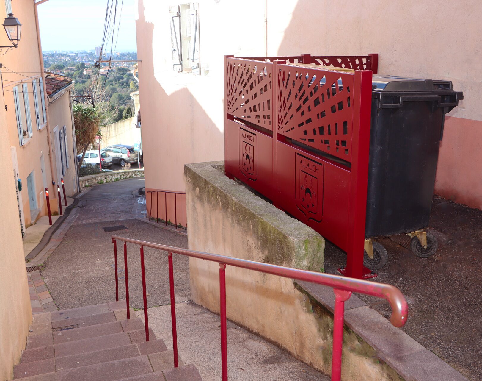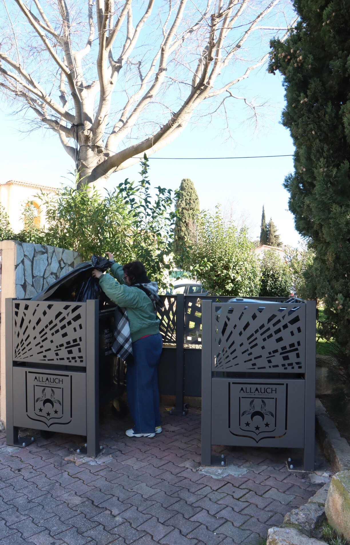 Dans cette dynamique, la Ville d’Allauch procède à la rénovation progressive de ses cache-conteneurs permettant de dissimuler les bacs d’ordures ménagères. Plusieurs d’entre eux ont été remplacés par un équipement neuf dans 7 secteurs de la commune, ils arborent le logo de la Ville et ont été conçus pour allier esthétisme, fonctionnalité et durabilité.