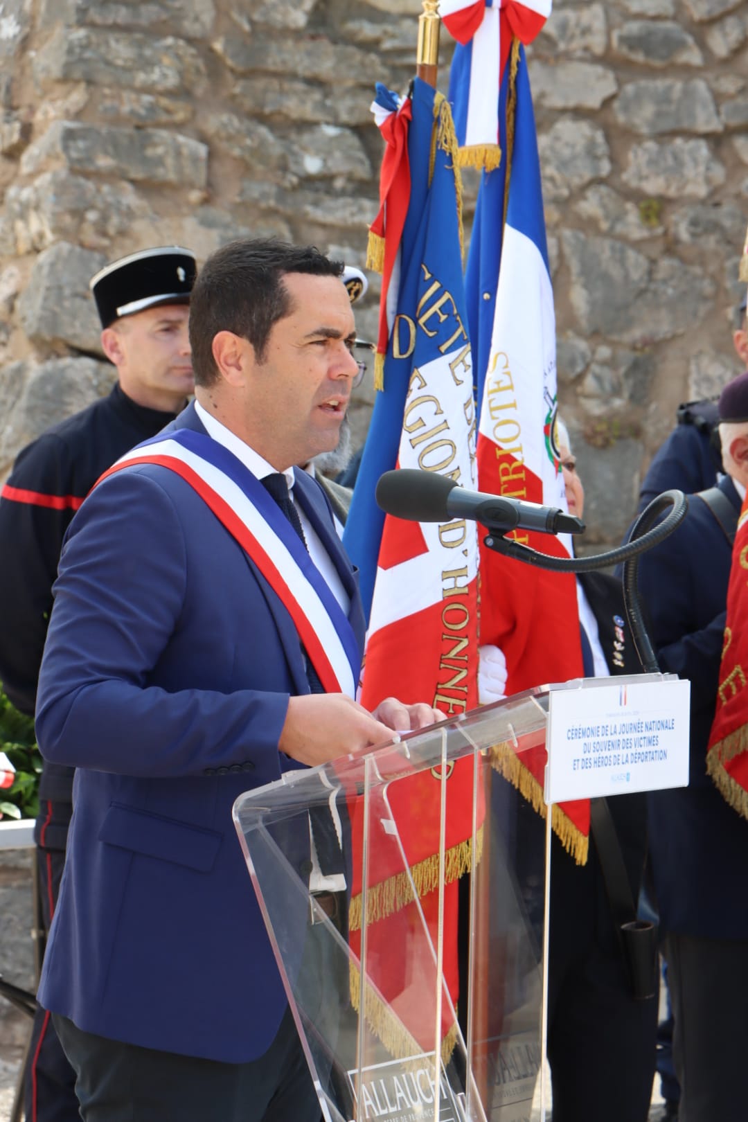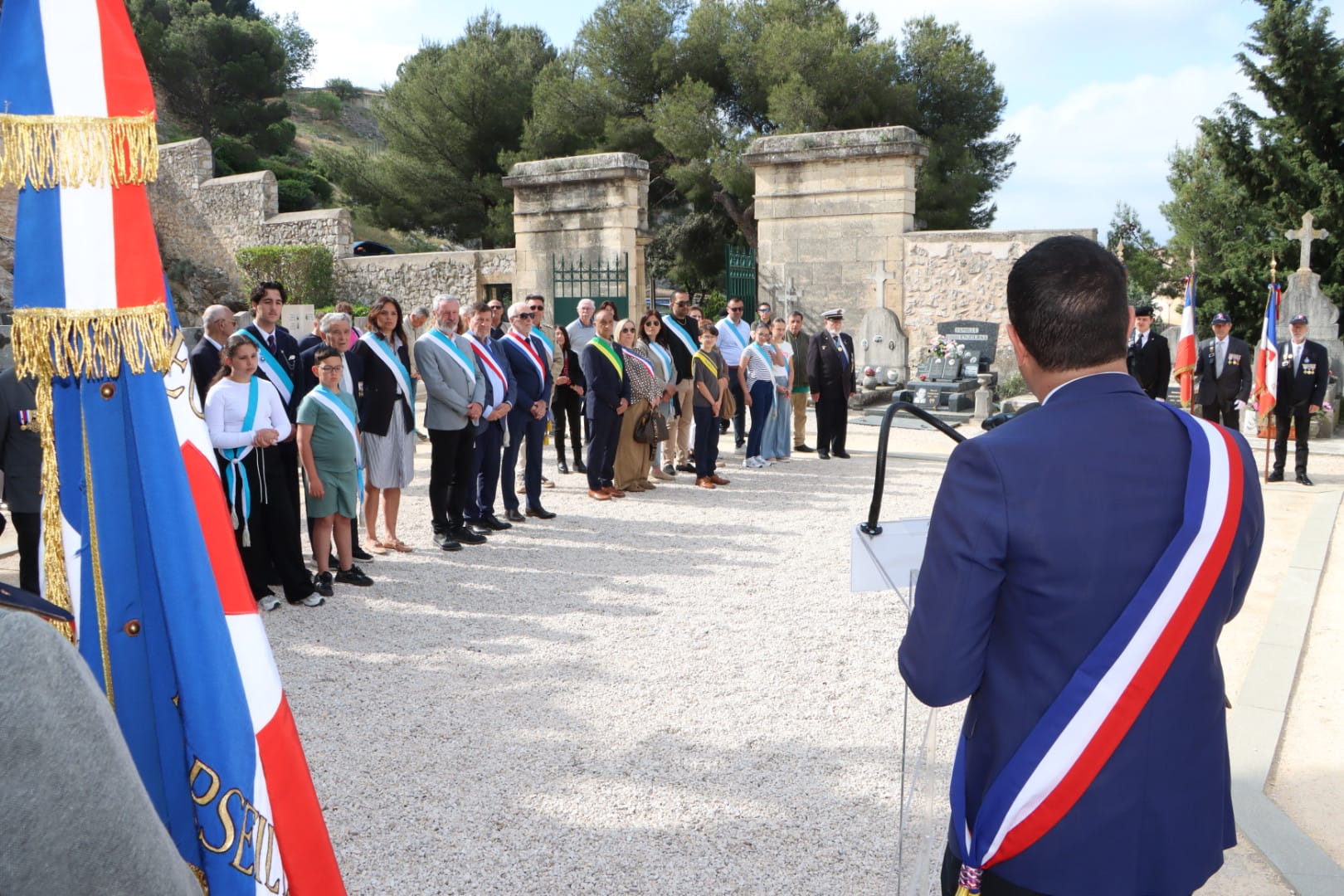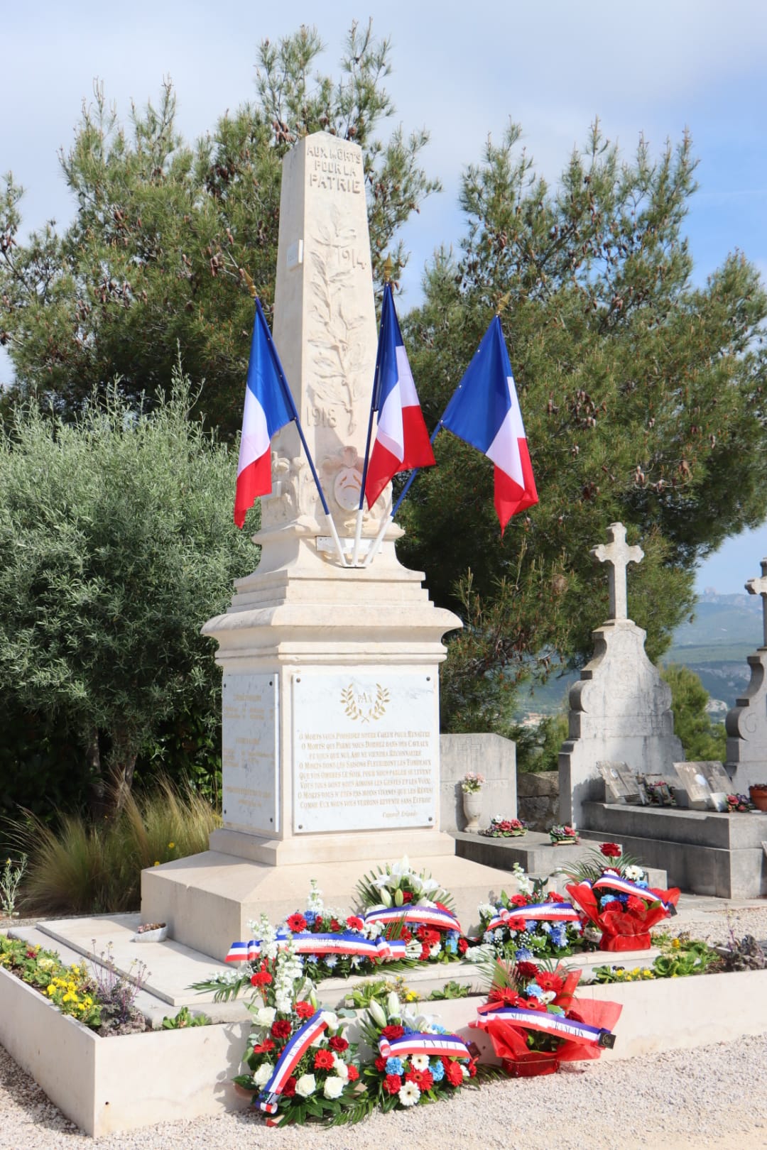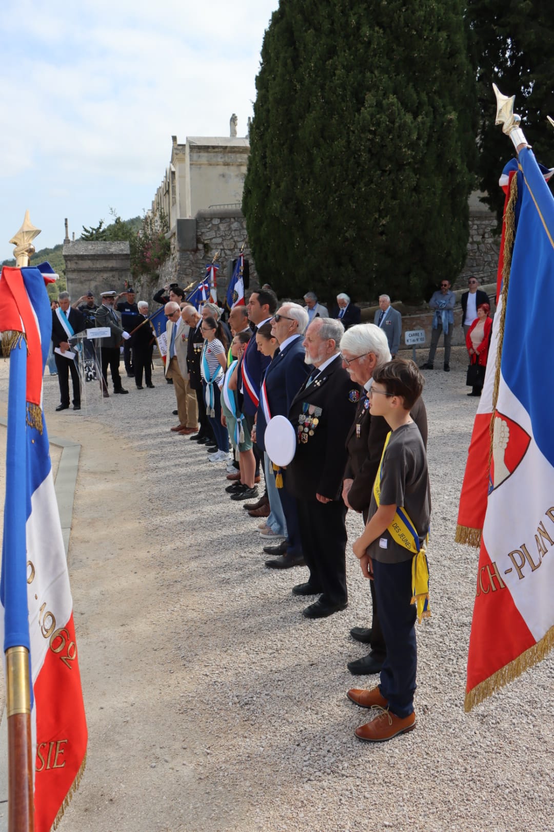 En présence notamment de Monsieur le Maire Lionel de Cala, d’Henri Carvin (conseiller municipal délégué au Monde Combattant), de Robert Giraud (conseiller municipal délégué aux anciens combattants représentant Laurent Simon, maire de Plan-de-Cuques) du député José Gonzalez, des présidents d’associations d’Anciens Combattants, des Porte-Drapeaux d’Allauch, des membres du Conseil Municipal des Jeunes, du Conseil Départemental Jeunes et du Parlement Régional Jeunes.