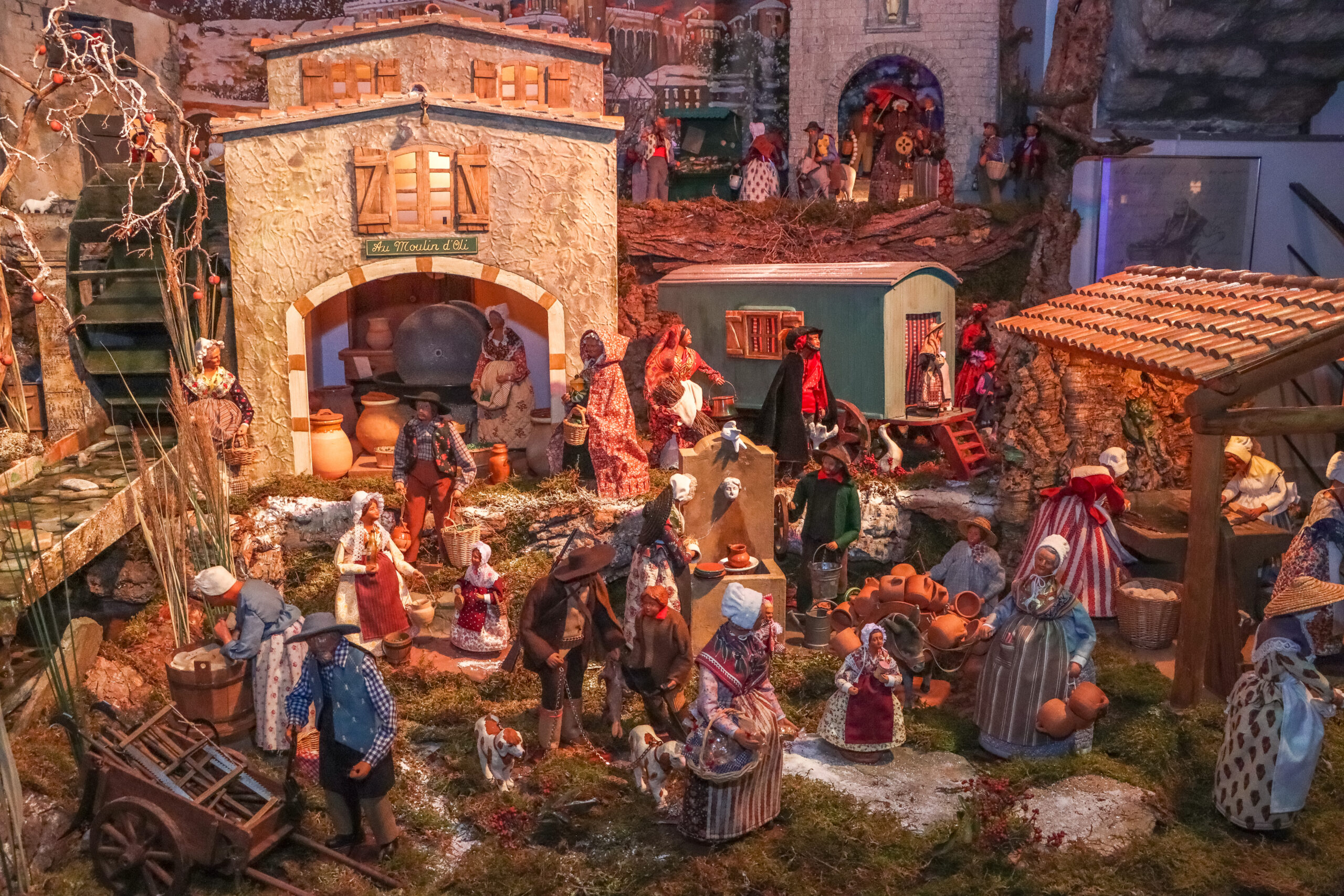 Sur plus de 100 m², un décor féerique sous lumière noire accueille 800 santons façonnés en argile et habillés de tissus anciens. Cinquante d’entre eux prennent vie grâce à des mécanismes d’animation qui émerveillent petits et grands. Depuis 1978, Gilbert Orsini a imaginé et réalisé plus d’une centaine de créations uniques. Cette édition présente de nouveaux personnages pour enrichir le spectacle : la marchande de tians de Saint-Zacharie, la marchande de journaux, la marmite charbonnière et le bourrelier animé. De l’éveil des bergers à la scène de la nativité, les enfants s’amusent à découvrir les anciens métiers, tandis que les adultes se laissent gagner par la nostalgie et la magie de Noël.