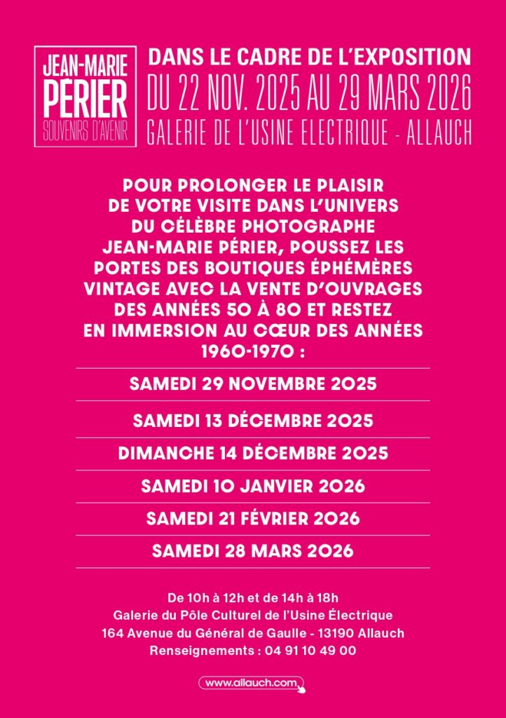 La Galerie du Pôle culturel de l’Usine Électrique d’#Allauch présente sa nouvelle exposition « Souvenirs d’Avenir » du célèbre photographe Jean-Marie Périer jusqu’au au dimanche 29 mars 2026. Plus de 100 photographies de l’auteur du cliché du siècle, qui vous feront découvrir la jeunesse des artistes emblématiques du mouvement « Yéyé » : Johnny Hallyday, Jacques Dutronc, Françoise Hardy, Sylvie Vartan ou encore Mick Jagger, les Beatles…