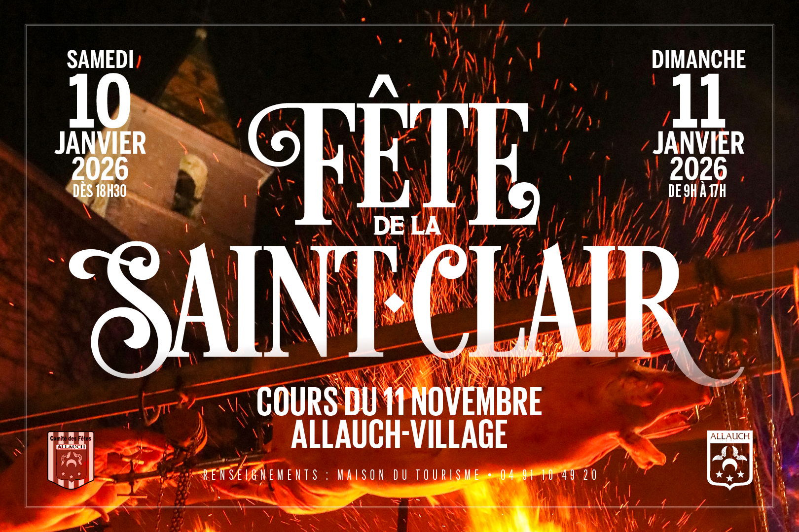 Aux sons du groupe folklorique Leis Ami d’Alau, les tambourinaires du Logis-Neuf, la Compagnie Bandura, les médiévales roquebrunoises, « La Ciotat, il était une fois » et La Ferme d’Autrefois, Allauch fait vivre chaque année, au coeur du village, la tradition avec la Saint-Clair, organisée par le Comité des fêtes présidé par Éric Napoleoni, en partenariat avec la Ville d’Allauch.