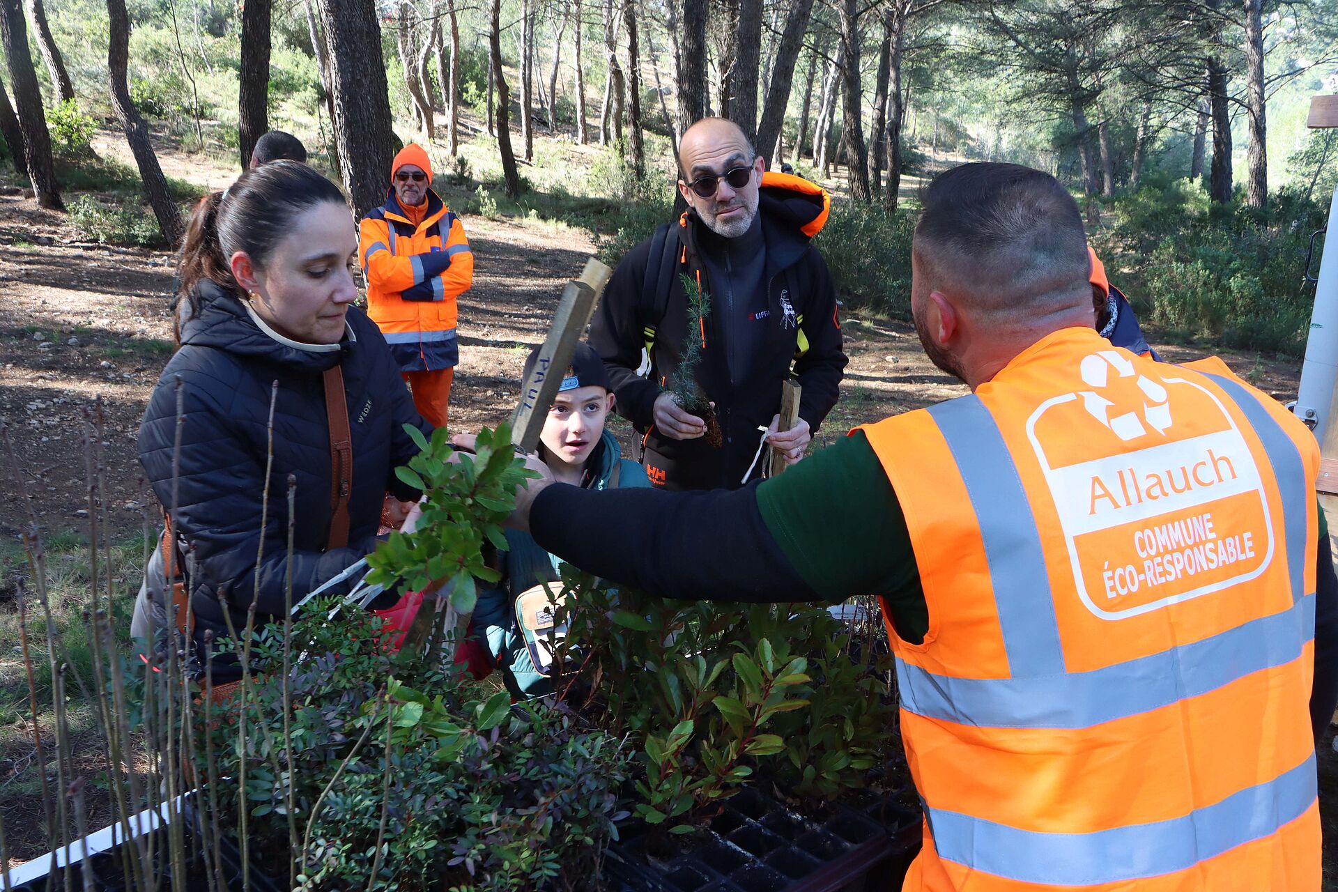 C’est par un temps frais mais ensoleillé qu’un millier d’Allaudiens et de visiteurs s’étaient donnés rendez-vous, ce dimanche, sur les hauteurs du Logis-Neuf, au lieu-dit « La Limace ». Accompagnés de nombreux bénévoles et passionnés de nature, tous ont retroussé leurs manches pour planter chênes verts et blancs, pistachiers, arbousiers, genévriers et bien d’autres essences adaptées à nos collines.