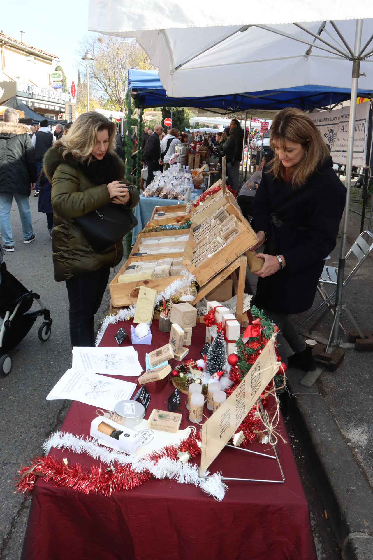 Dimanche, le Marché de l’Avent a accueilli artisans, commerçants et exposants venus proposer leurs créations et produits de qualité. Entre idées cadeaux, stands gourmands, manège, barbe à papa, churros et la visite du Père Noël en calèche, l’ambiance était douce et festive .