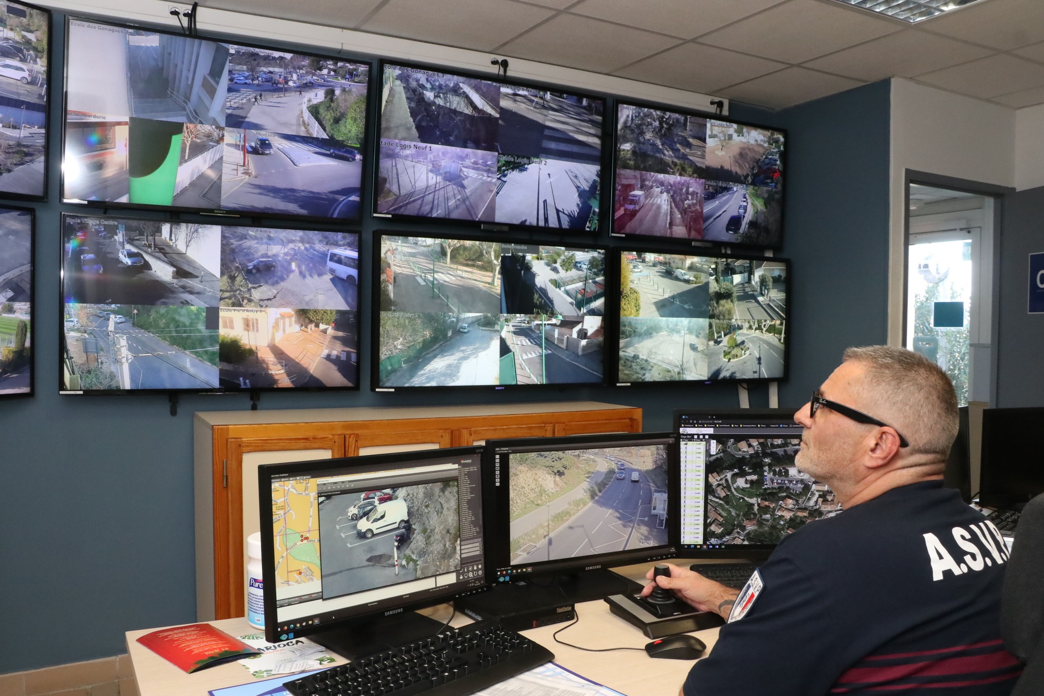 Le CSU est le pôle de vidéo protection où les images prises par les caméras sont transmises en temps réel sur les écrans gérés par les agents de la Police municipale. La salle possède un mur d’images composé de 8 écrans permettant l’affichage de 24 caméras en simultané. Un dispositif dissuasif qui permet de mieux renforcer la sécurité des personnes et de l’espace urbain.