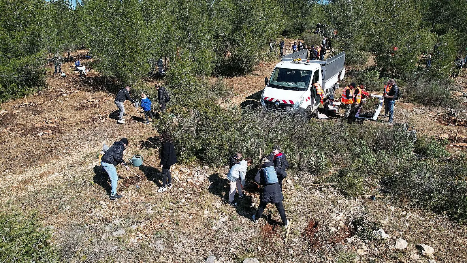 Accompagnés de nombreux bénévoles et passionnés de nature, tous ont retroussé leurs manches pour planter chênes verts et blancs, pistachiers, arbousiers, genévriers et bien d’autres essences adaptées à nos collines.