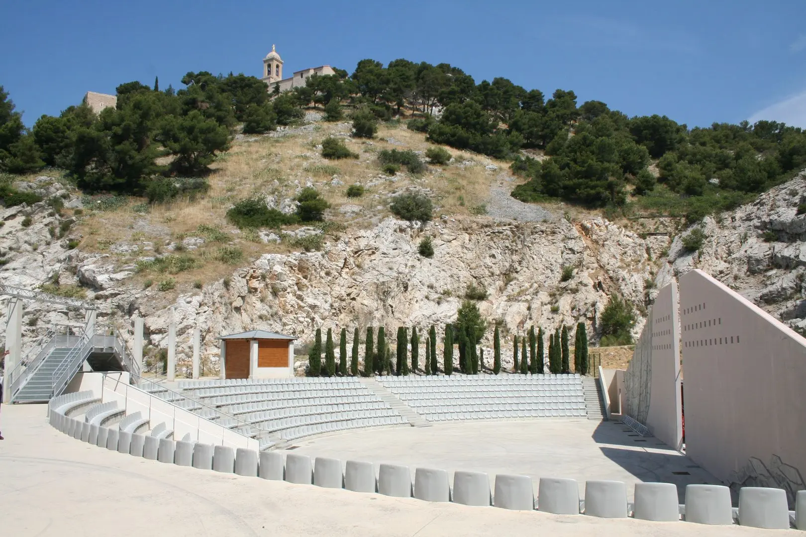 La dominante rocheuse du Théâtre de nature s’allie parfaitement à l’architecture ultra moderne de son installation propice aux spectacles visuels. Cet espace offre un magnifique panorama sur la plaine et la rade de Marseille. La structure est souvent utilisée de nuit, embellie par un jeu de lumières qui s’appuye sur les fonts de taille et les plate-formes monumentales, permettant de créer une ambiance intime et un décor magique.