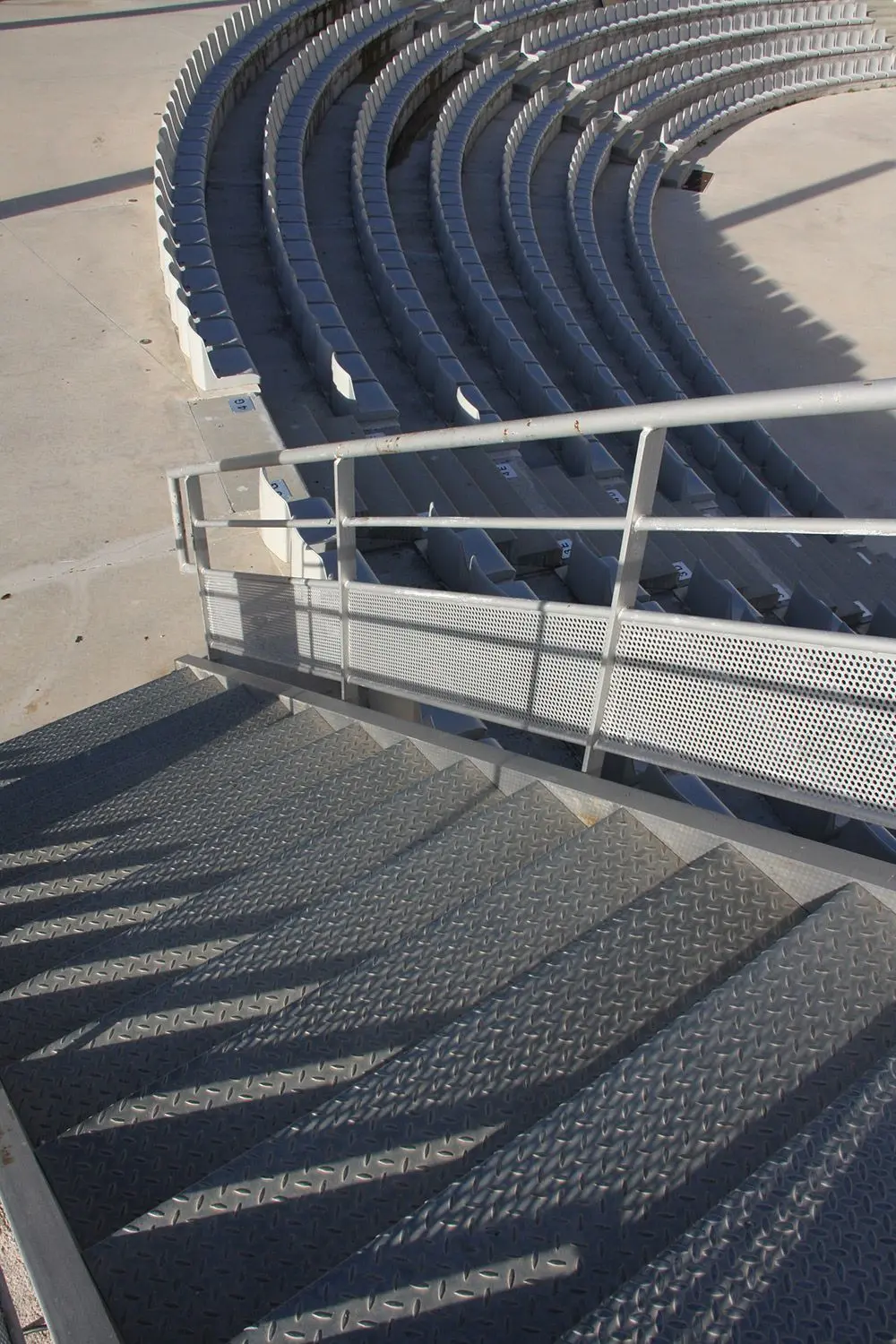 La maisonnette située à l’entrée sert de guichet. Vous pénétrez ensuite sur une vaste esplanade de 3 000 m² servant d’aire de stationnement de 120 places les jours de représentations. De l’autre côté, le théâtre s’étale à vos pieds. Disposés en arc de cercle, les gradins permettent d’asseoir pas moins de 800 spectateurs, un nombre porté à 1 200 places grâce à l’avant-scène. Un couloir central descend vers la scène. Le mur de fond de scène, dessiné par un architecte et un plasticien, rappelle un rideau de théâtre. Les loges, locaux de rangement et zone de transfert des décors, sont cachés derrière cet ouvrage.