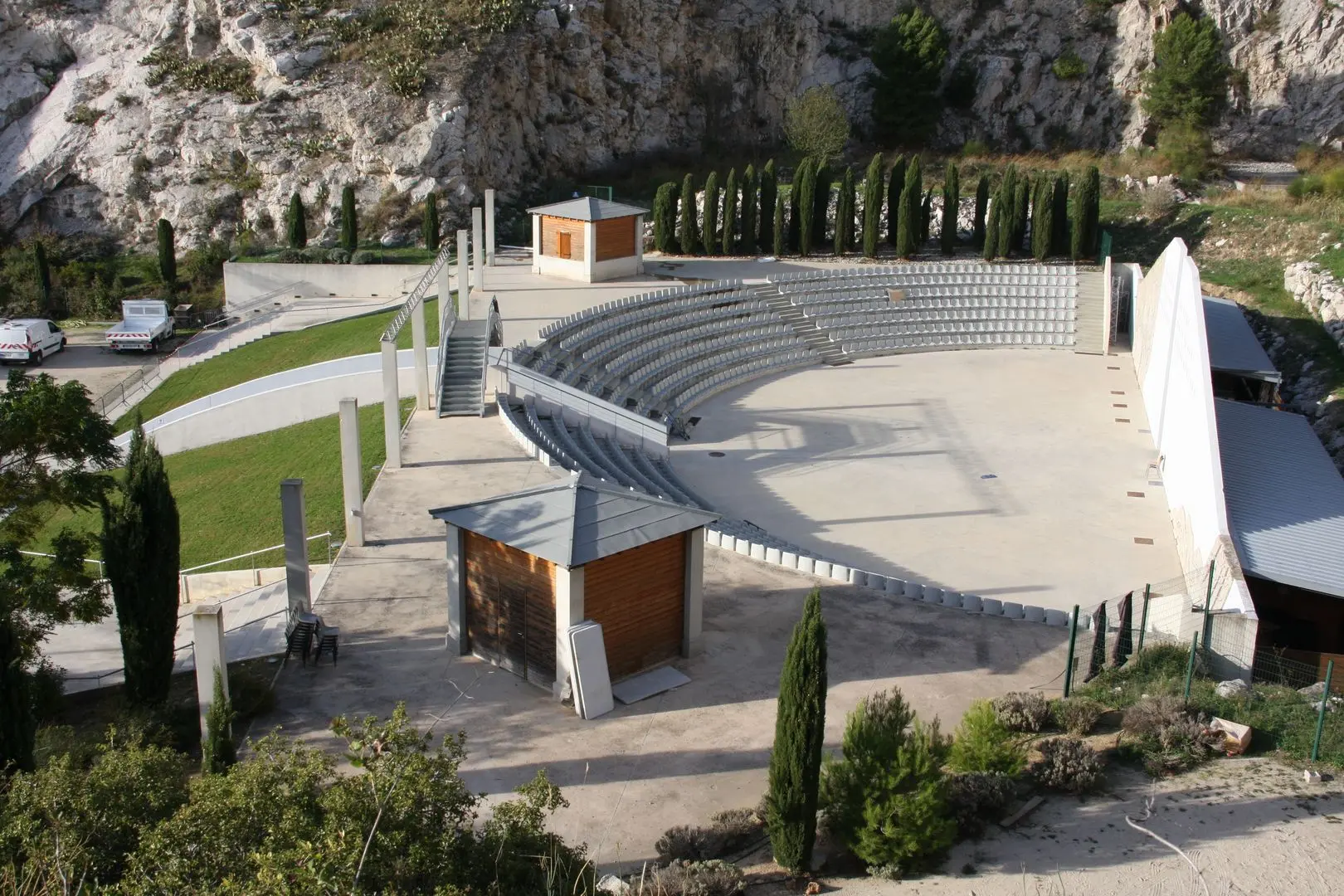 Ce « théâtre antique », construit en 2000 et protégé par un cirque de calcaire éblouissant de clarté, permet d’accueillir plus de 800 personnes dans un écrin exceptionnel, à l’occasion de grands spectacles, dans un cadre grandiose où la force de la nature côtoie la magie humaine. Il possède également un parking de 120 places au niveau de l’esplanade.