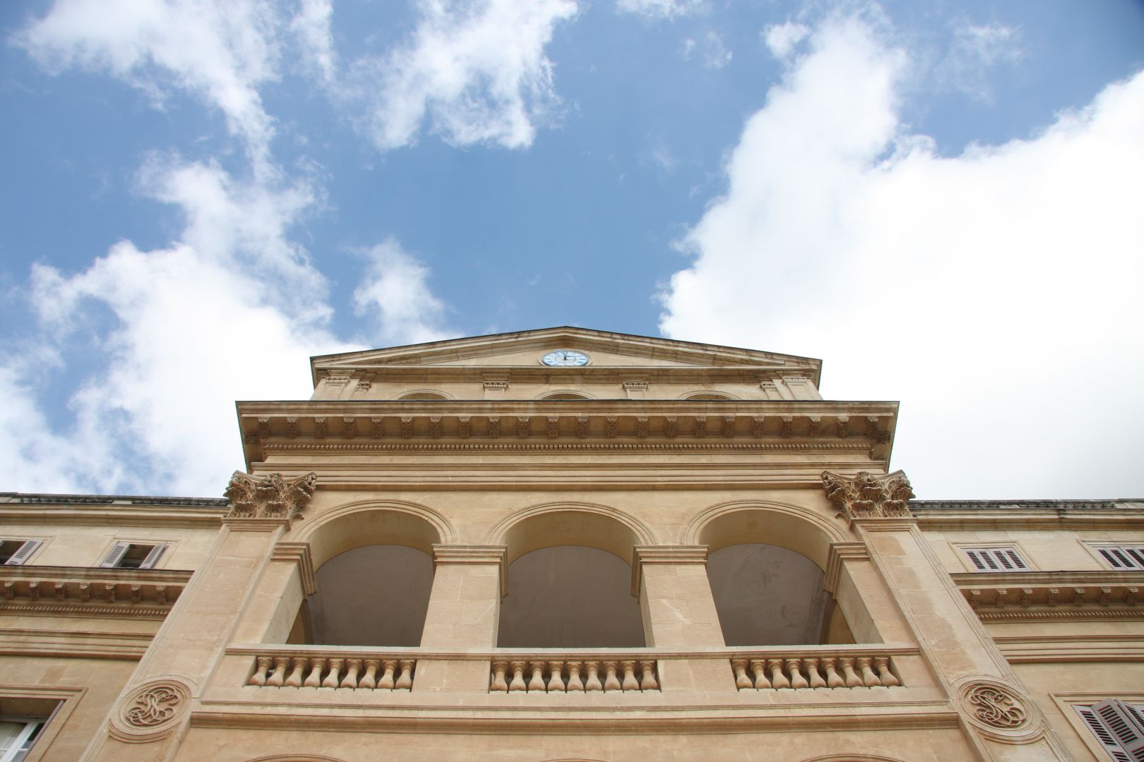 Mais cette forme est cassée par un fronton souligné de deux escaliers aux rampes symétriques. Ils conduisent avec une élégance corinthienne au premier niveau d’habitation. Les étages sont agrémentés de deux grandes loggias. Le toit est dissimulé derrière une balustrade classique. Des caves voûtées s’étendent sous l’ensemble du bâtiment.
