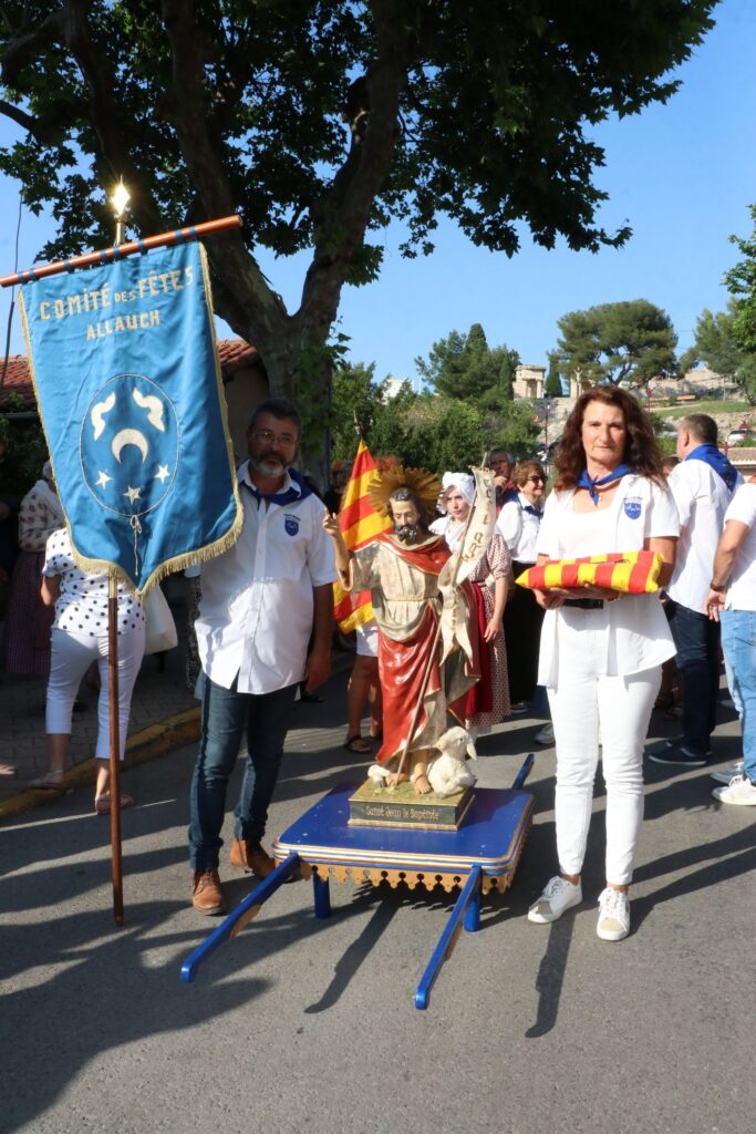 Celle-ci débute par la messe en plein air, et se poursuit par le défilé de chars colorés, la bénédiction des chevaux, puis la vente aux enchères du Gaillardet, qui vient clore cette semaine de fêtes organisée par la Ville d’Allauch, avec le concours de toutes les associations traditionnelles allaudiennes.